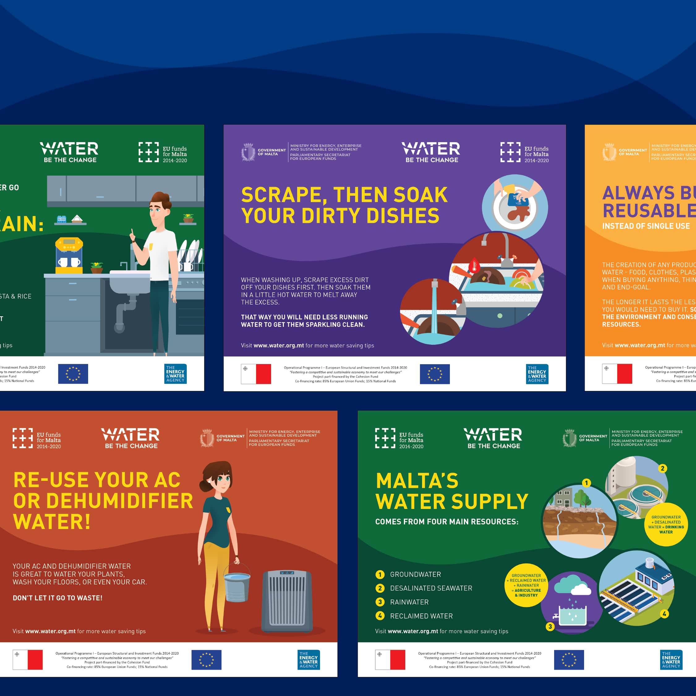 The project represented the largest EU tender ever awarded for a marketing campaign in Malta. The task was to create a comprehensive brand identity and nomenclature for a nationwide water conservation initiative. Originally planned as a three-year project, it extended to five years due to the unforeseen impact of the COVID-19 pandemic.